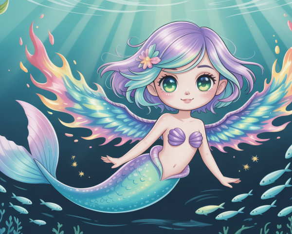 A charming anime girl showcases a vibrant fire-winged swimsuit, blending playful design with bold colors. Her expressive features and dynamic pose evoke a sense of adventure and fantasy.