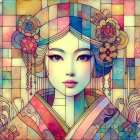 The Enigmatic Portrait Of An Exquisitely Beautiful Ancient Geisha Goddess. Fauvism-Pop Patchwork By Tony DiTerlizzi & Wylie Beckert & ∞