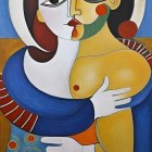 Stylized Couple Illustration with Vibrant Colors and Patterns