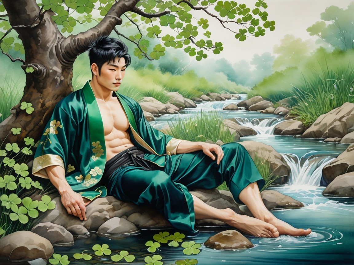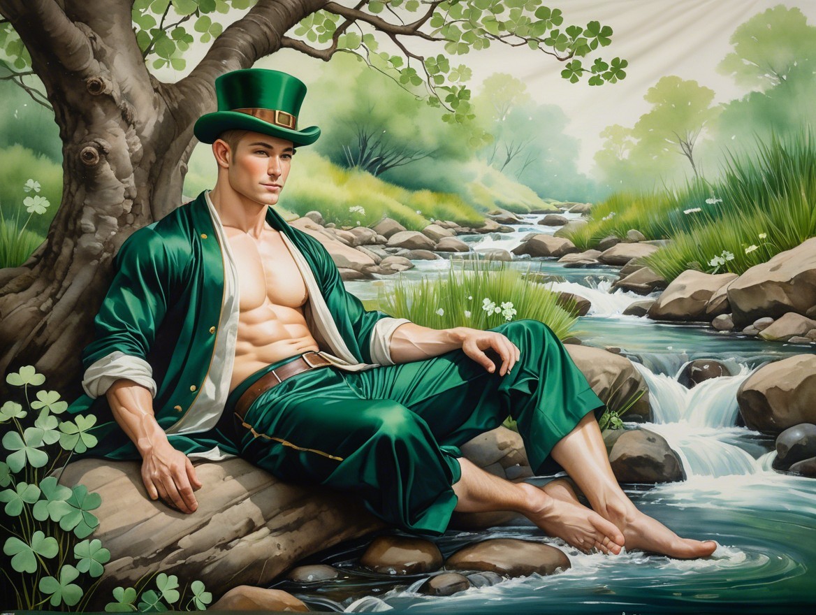 When DDG recovered from its Irish whiskey hangover, it stated the obvious: "A muscular man in a green outfit and top hat lounges by a peaceful stream, surrounded by lush greenery and clovers, exuding a relaxed and festive St. Patrick's Day vibe."