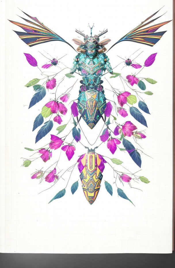 Vibrant, Multicolored Insect Artwork with Ornate Detailing