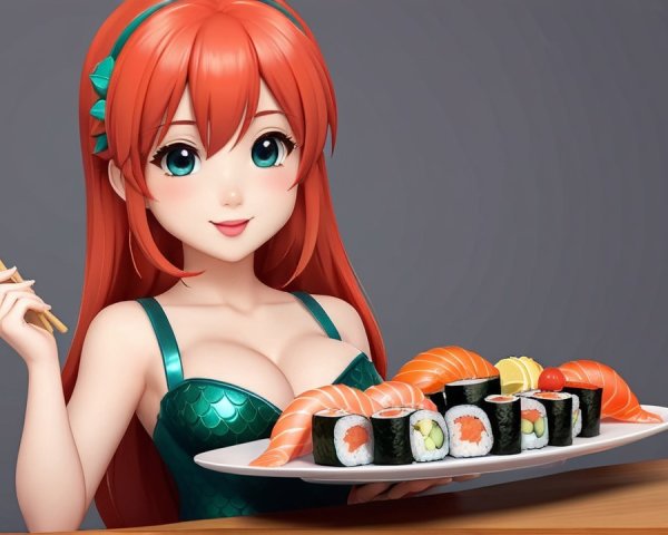 A whimsical scene unfolds as a magical catgirl, adorned with vibrant colors, rides gracefully inside a sleek underwater train. Colorful marine life swims by, creating a fantastical underwater adventure.