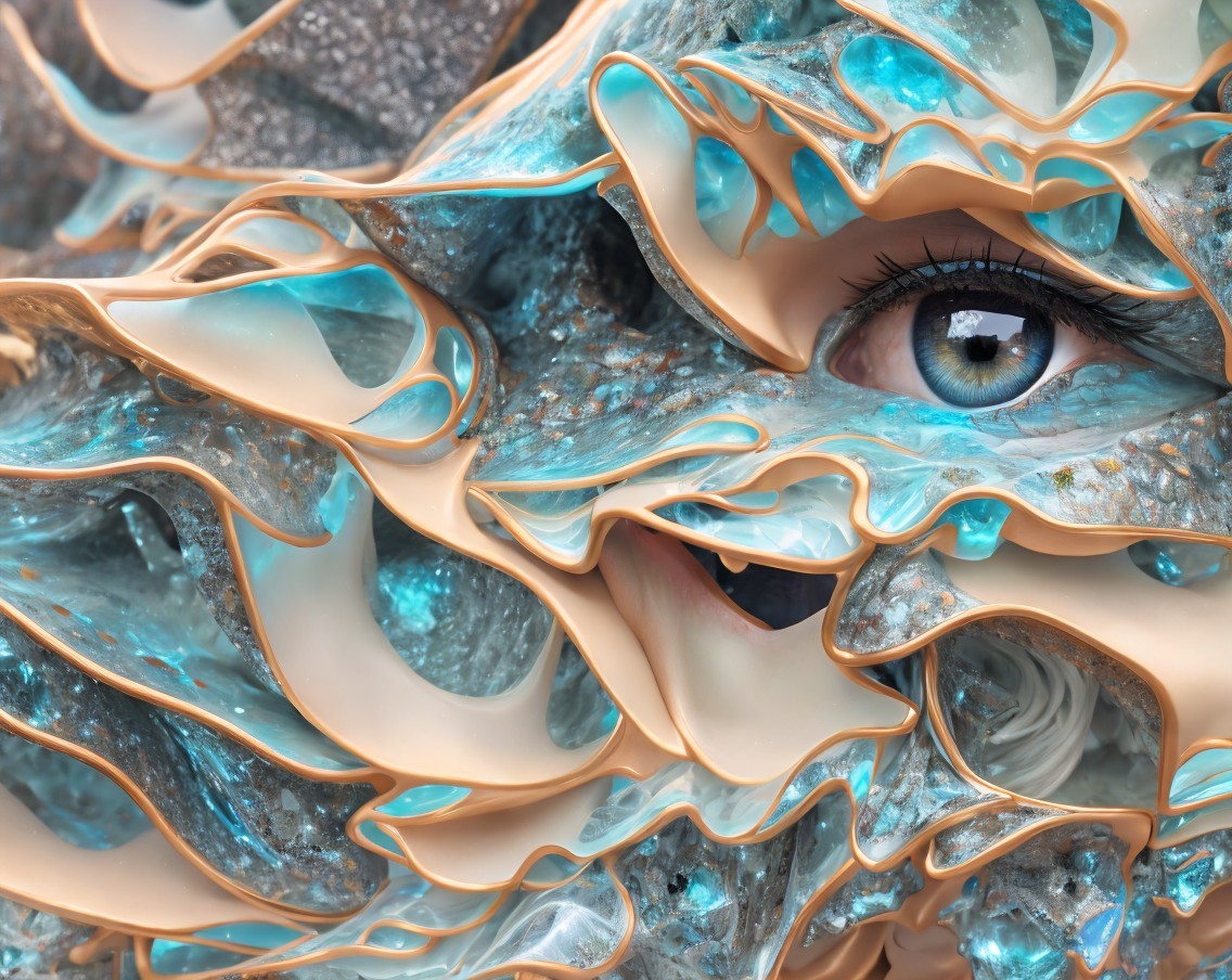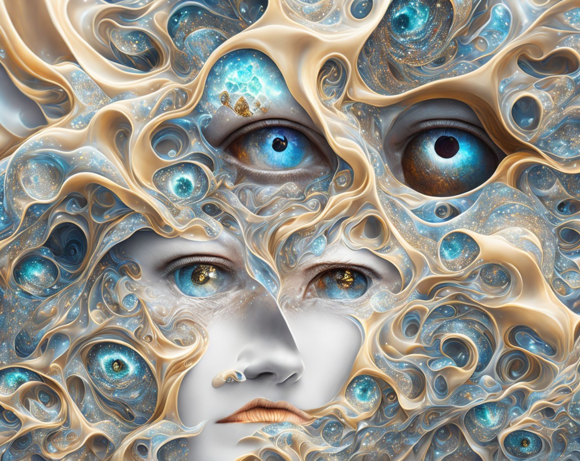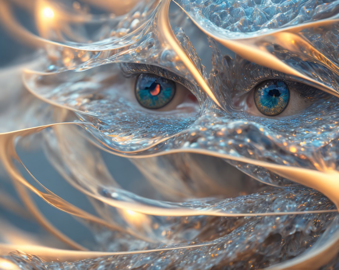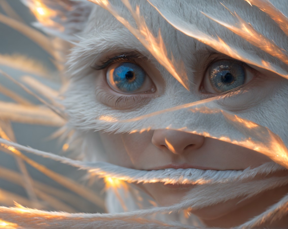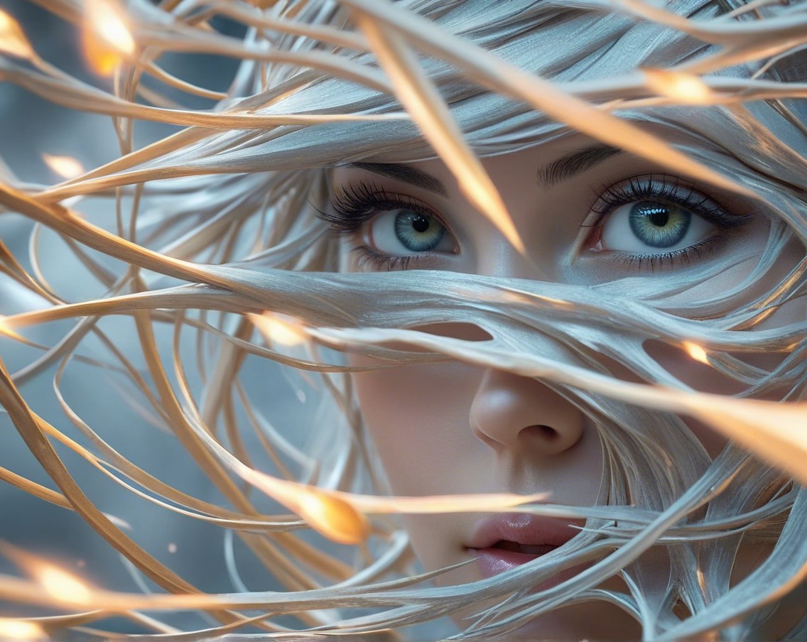 Futuristic Scene with Ethereal Face and Metallic Strands