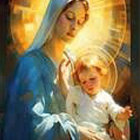 A serene depiction of a mother and child, highlighting the gentle bond between them. Soft light radiates from behind, creating a warm and ethereal atmosphere. Elegant details enhance the spiritual mood.