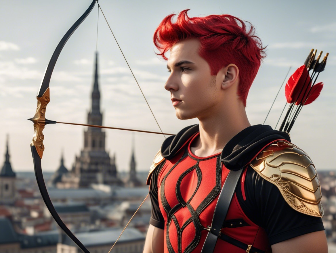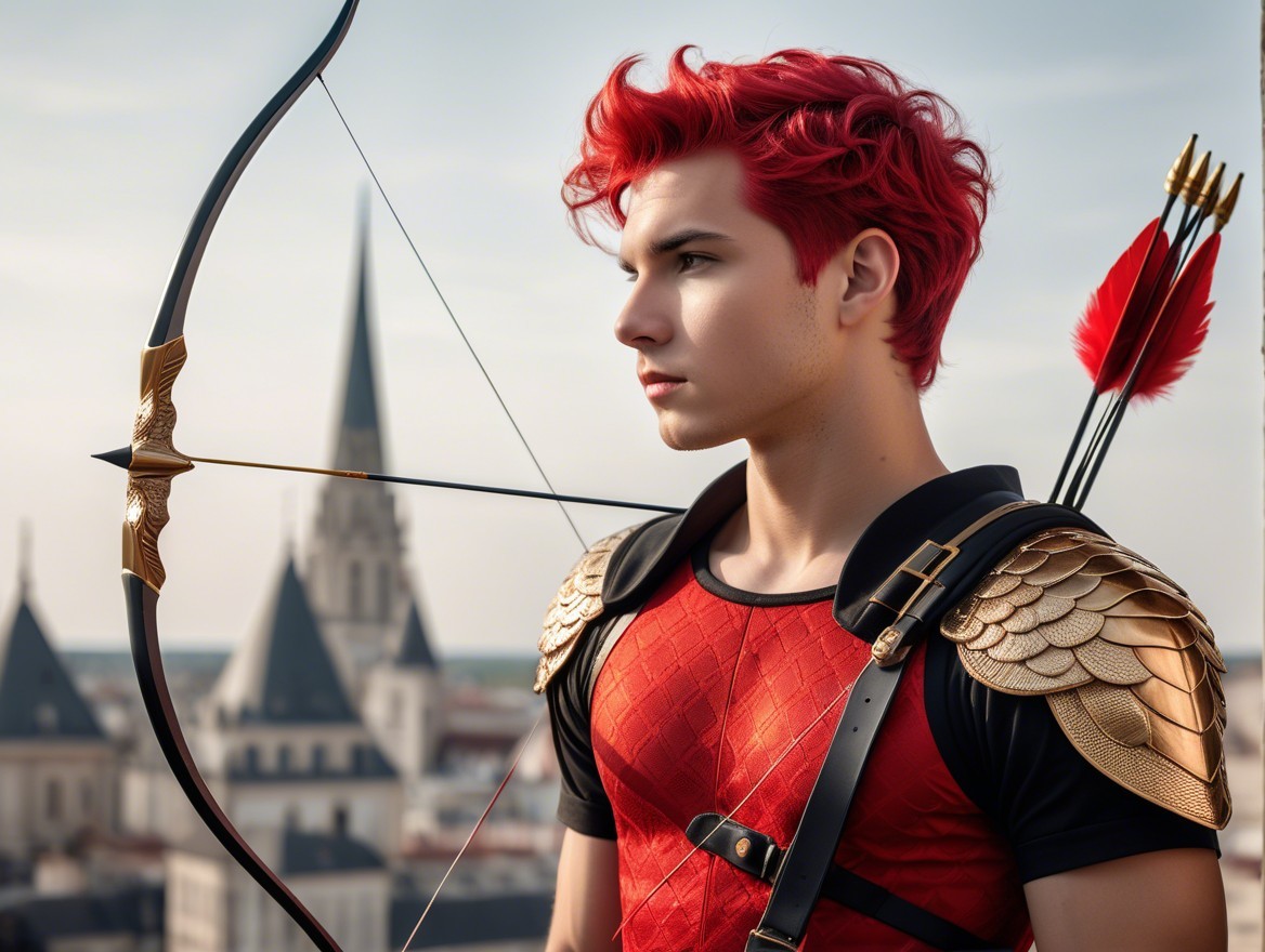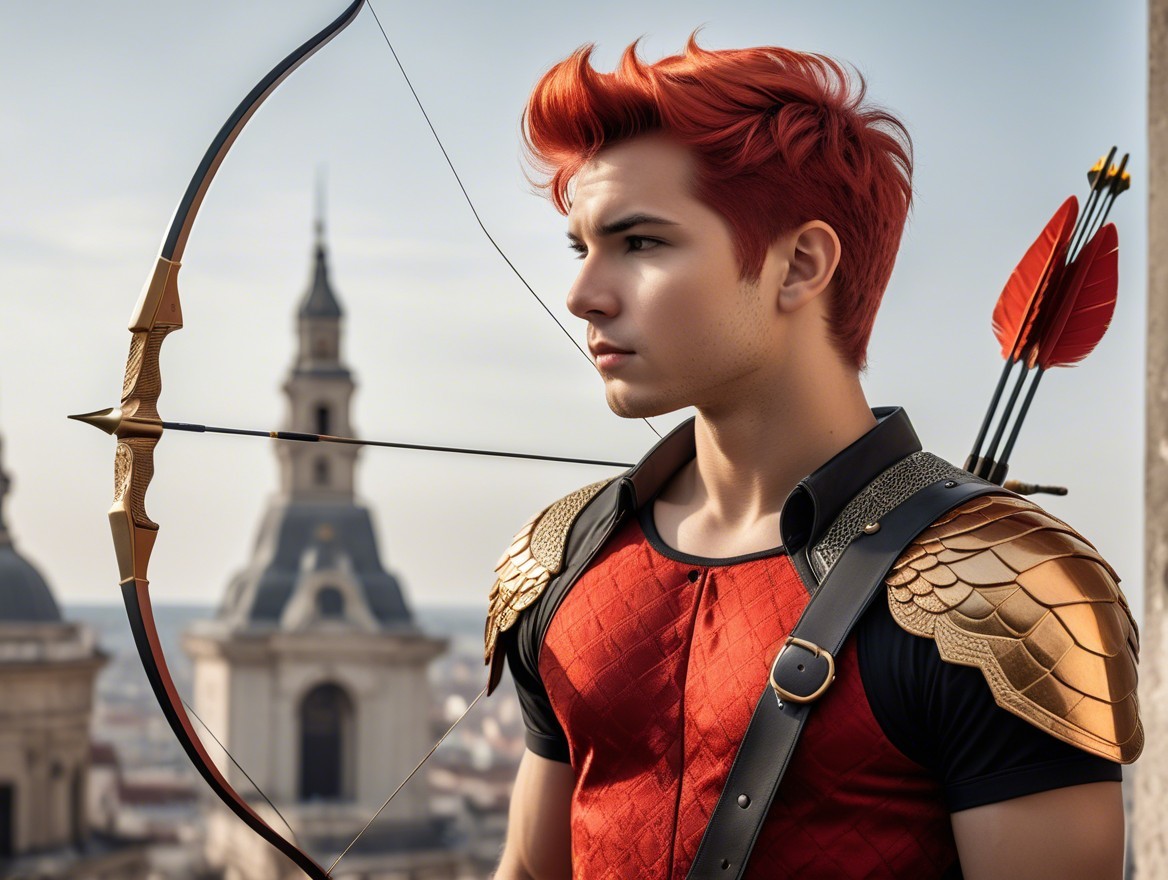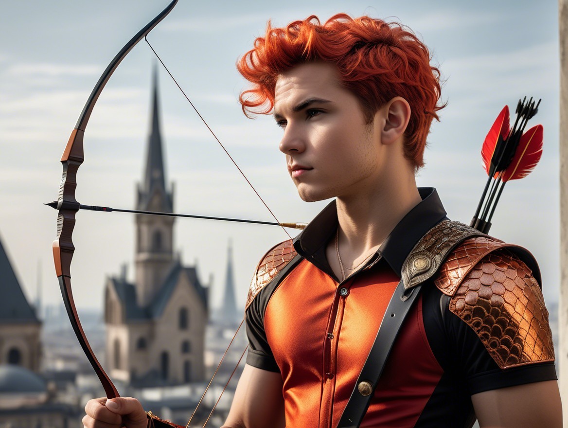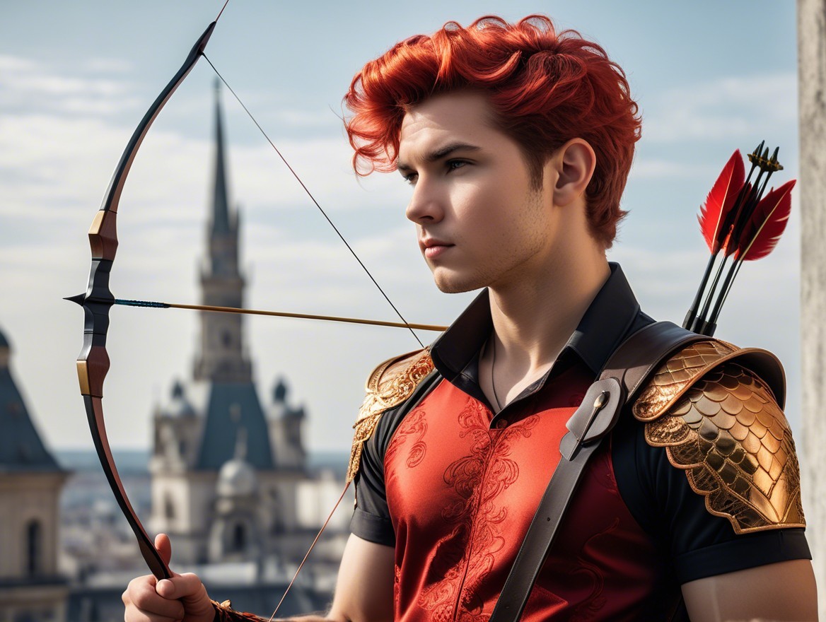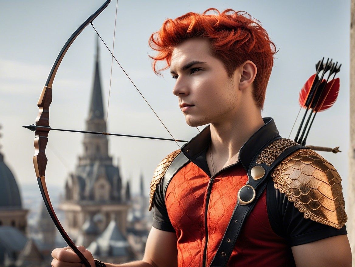 My artistic AI companion had this to say about its masterpiece: "A young archer with striking red hair stands poised, holding a bow. Dressed in a detailed, armor-like top, he gazes into the distance, with arrow quiver visible against a backdrop of towers."