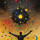 Colorful Cosmic Explosion with Central Silhouetted Figure