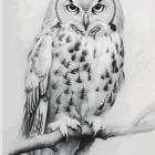 A beautifully detailed gray-scale illustration of an owl perched on a branch, showcasing its large eyes, intricate feather patterns, and distinct ear tufts, evoking a sense of wisdom and mystery.