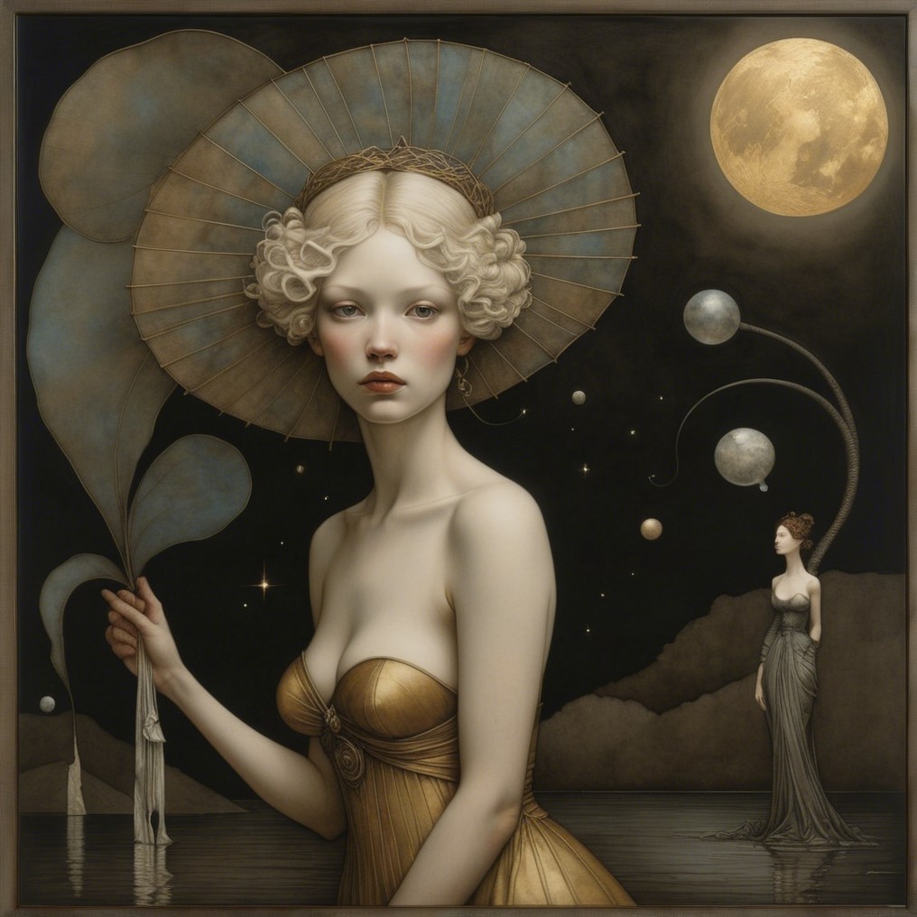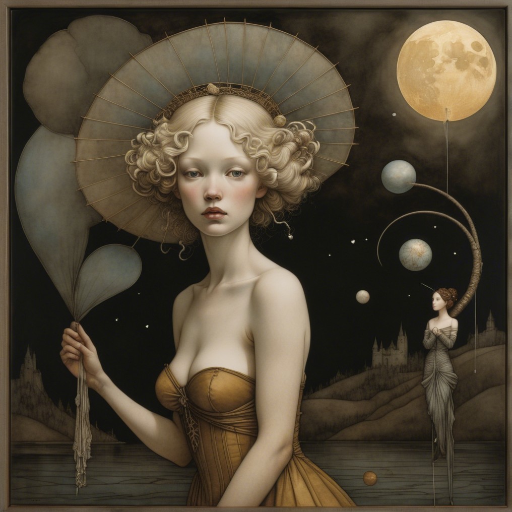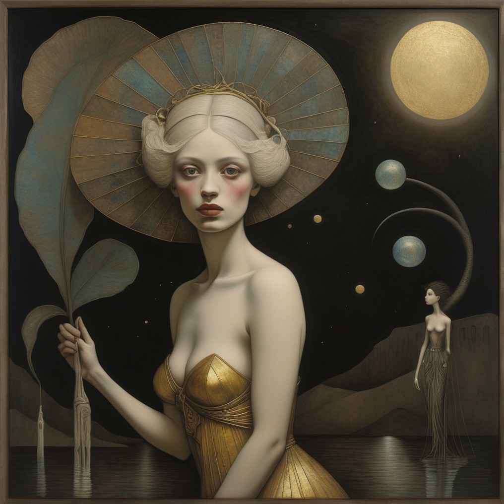 . Art by Andrew Wyeth, Erin Hanson, Klimt, CE brock, H. R. Millar, Dee Nickerson, Arthur Rackham. 3d, extremely detailed, beautiful, watercolor and ink, mixed media, Best quality, Very high definition, super clear resolution, cinematic, intricate, fantastic view, beautiful, dynamic lighting, high definition, hdr *Random prompt award winning Max Ernst ultra detailed, 4K 3D, Texture