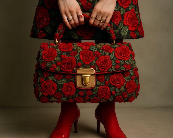 This impressionistic artwork depicts two large-featured women and a child in a misty twilight setting. Their dark hair swirls, illuminated by golden sparkles, while a red balloon floats between them. A child in a white dress walks along a distant paved path, surrounded by muted greys, blues, and hints of gold. The scene blends fantasy