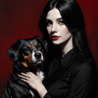 A young woman in a black witch's outfit holds a pumpkin, surrounded by vibrant autumn leaves and sunflowers. A full moon glows softly in the night sky, enhancing the enchanting atmosphere.