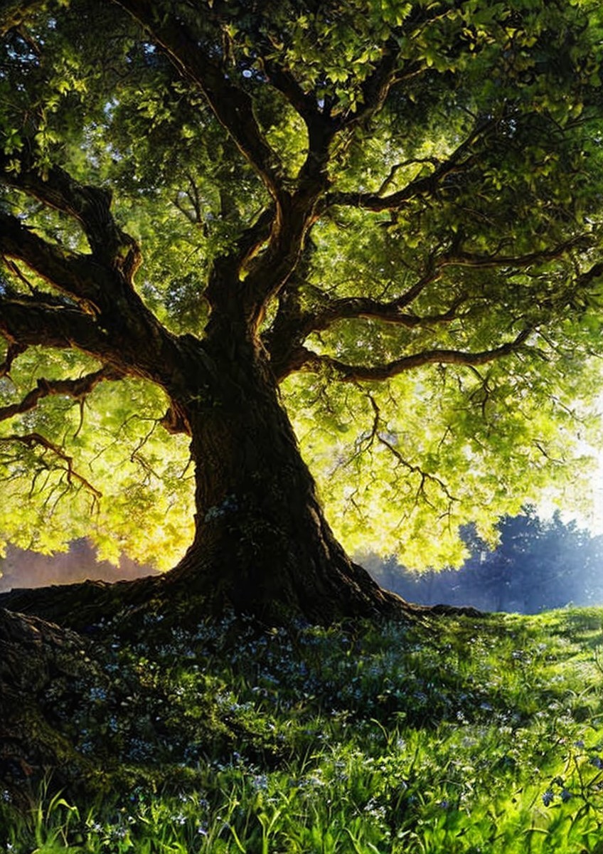 Prompt: Intricate illuminated magic floating leaves and branches made of backlit blown glass, breathtaking borderland fantasycore artwork by Android Jones, Jean Baptiste monge, Alberto Seveso, Erin Hanson, Jeremy Mann. professional maximalist