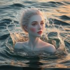 A woman with flowing blonde hair poses gracefully, entwined with a realistic octopus. She gazes thoughtfully, blending elegance and the mysterious allure of the ocean.