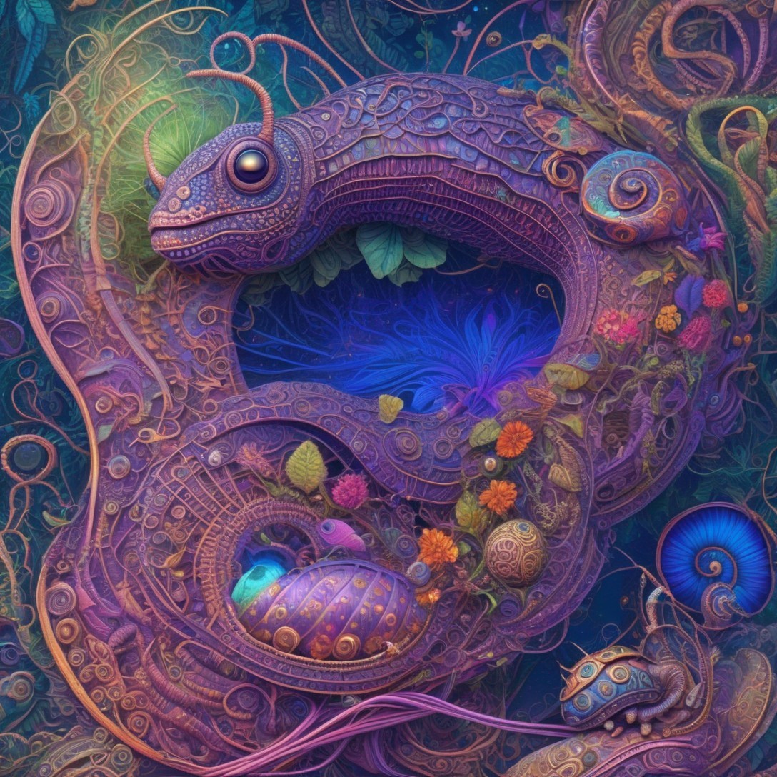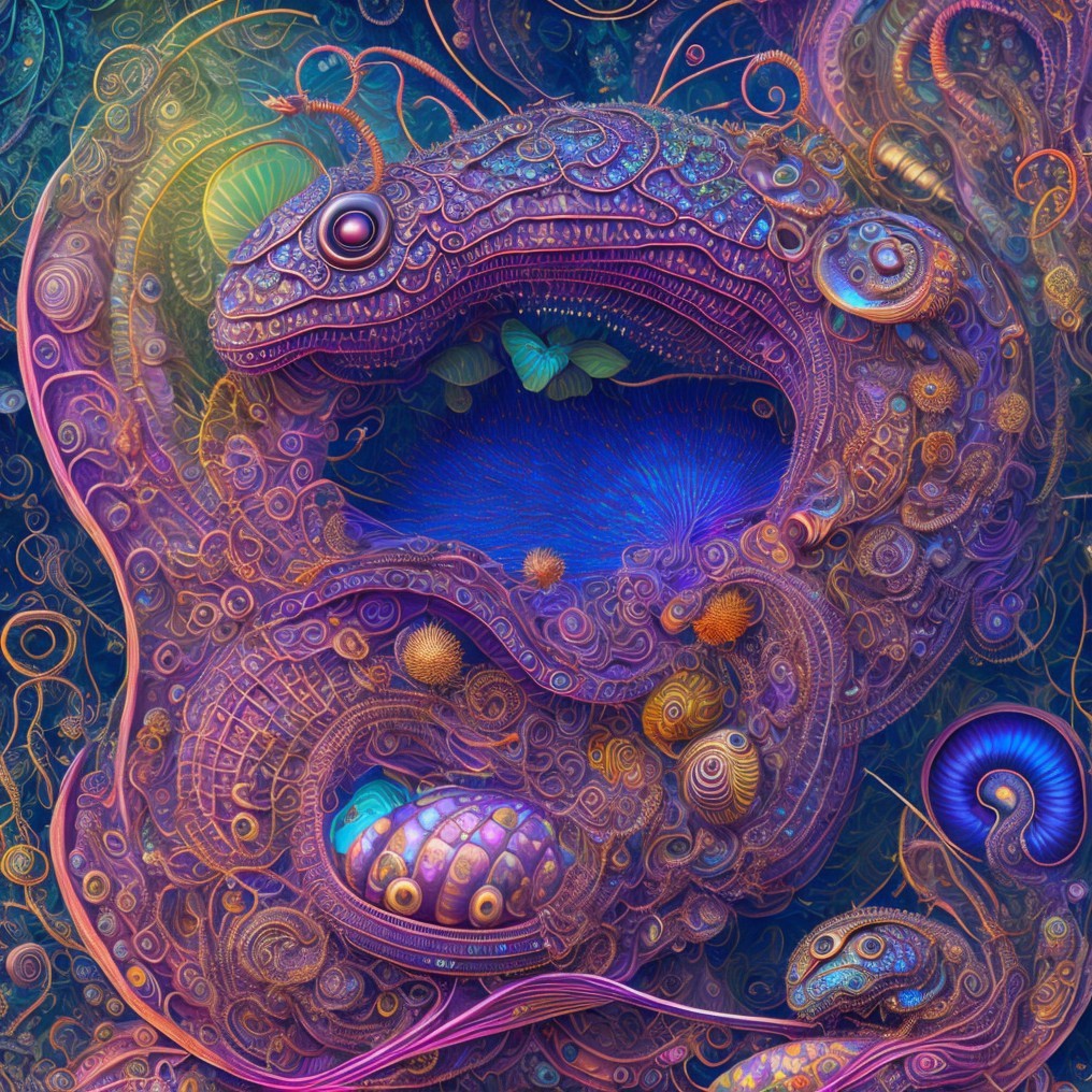 Eye peeking through ornate bronze filigree with jewels in vibrant digital artwork