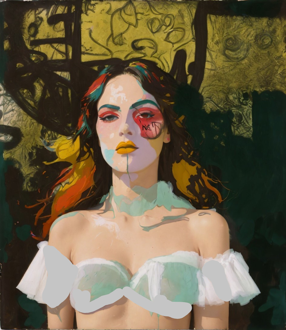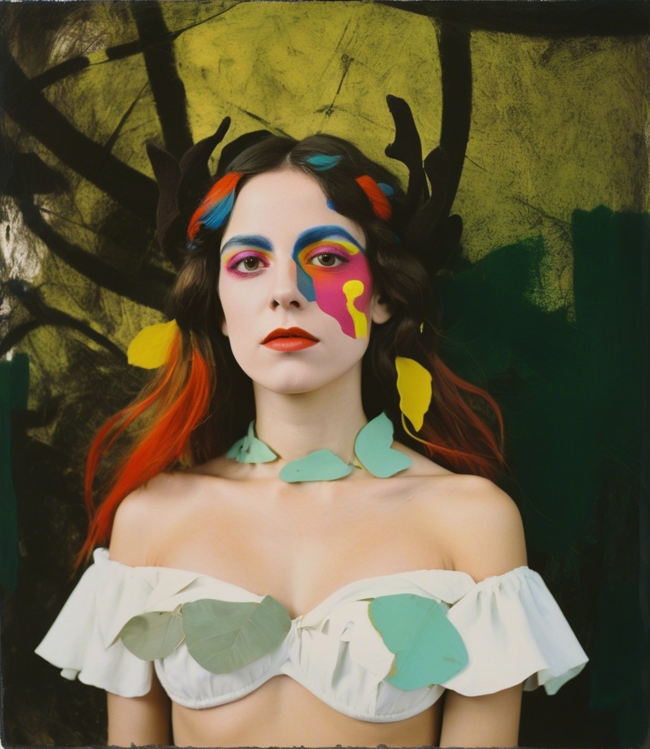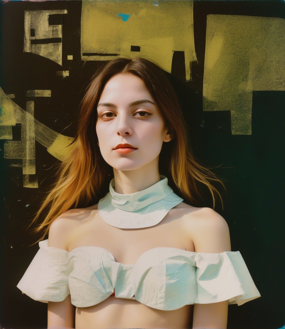 naive art, graffiti, art brut, glamorous, primitivism, abstract expressionism, Polaroid spectra film, Film emulsion manipulation