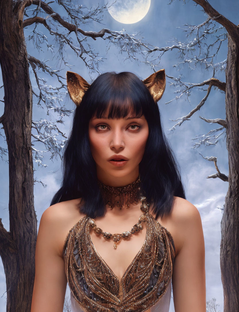 Prompt: "portrait of a female werewolf, wolf-girl, moonlight streaming down through the branches, symmetrical face, sharp eyes, soft skin, oil painting by Roger Dean + Frank Kelly Freas + Remedios Varo, ultra realistic, award winning, exquisite craftsmanship, crisp quality, intrincate details, delicate detail, 4k, masterpiece, photorealistic, extremely detailed, astonishing, heavenly, bewitching, splendid, very beautiful, very cute, overwhelming, adorable, amazing, very refined, sublime, stunning, classy, tantalizing, irresistible, magnificent, elegant, voluptuous, appealing, dreamlike, very pretty, exceptional, polished, radiant, trendy, detailed face, fabulous, dreamy, mesmeric, fascinating"