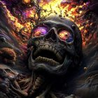 Cosmic Skull Surrounded by Colorful Nebulae and Stars