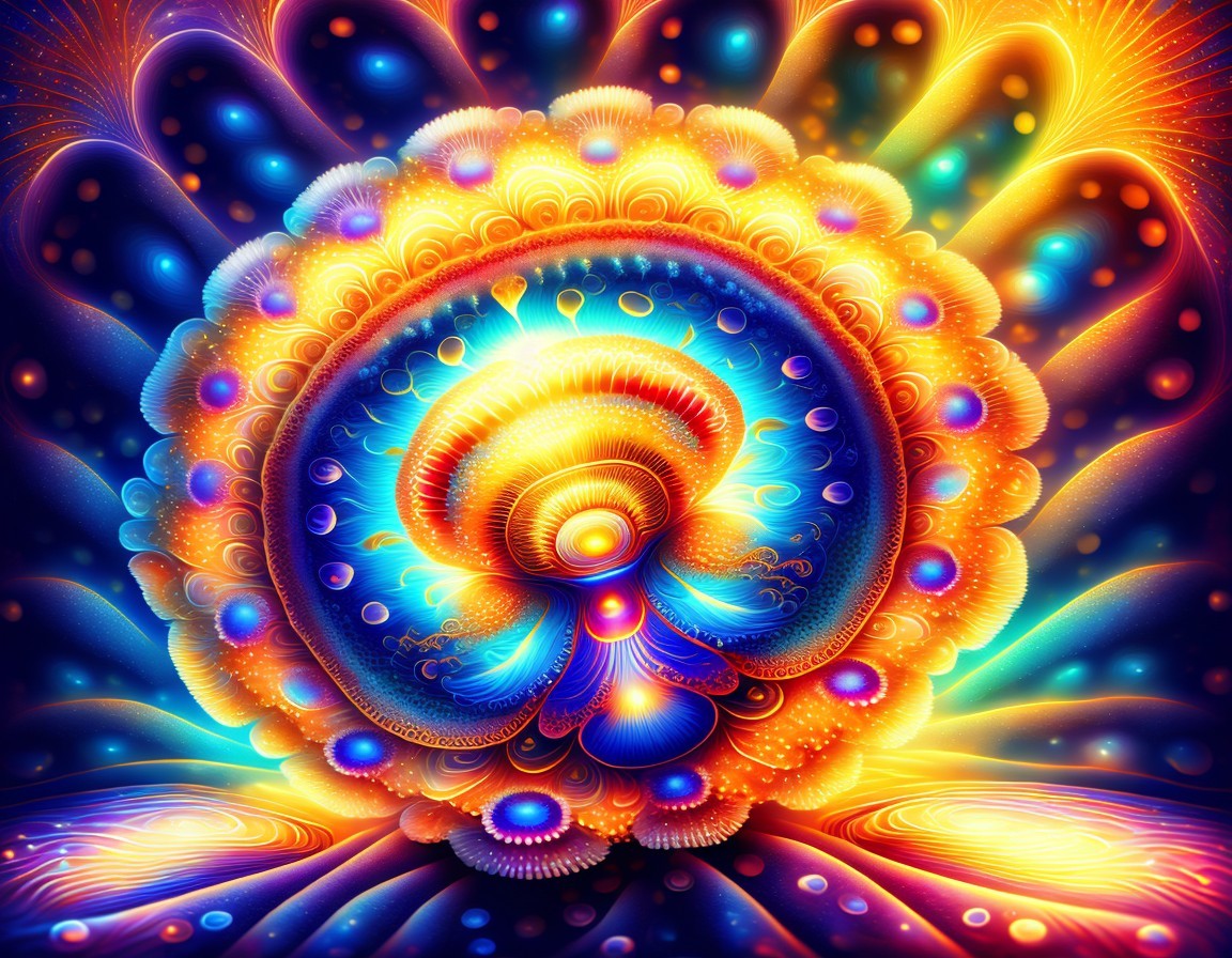 Vibrant digital art of a jellyfish with glowing tentacles, set against a colorful, psychedelic background.