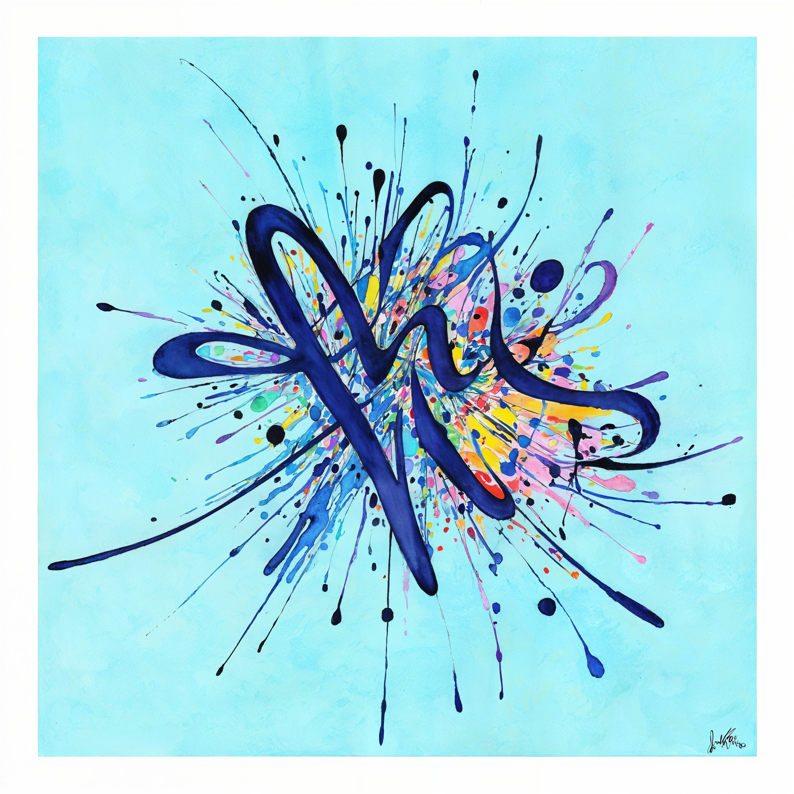 A vibrant urban skyline bursts with color against a blue background, featuring dynamic splashes of pink, yellow, and black, creating an energetic and modern artistic effect.