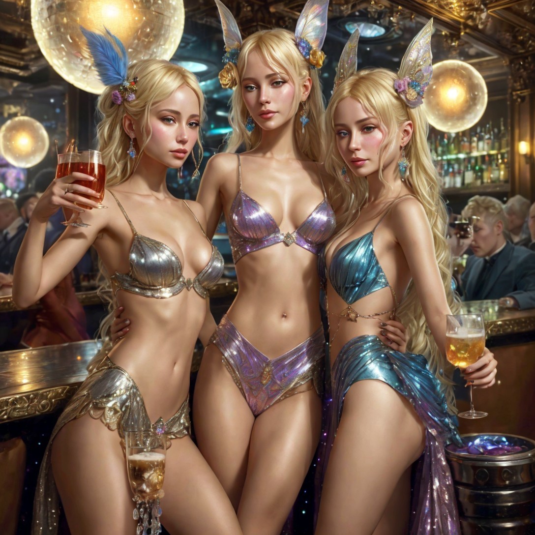 Fantasy Women with Butterfly Wings in a Bar Setting
