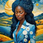 A graceful heron stands amidst vibrant water lilies and lush greenery. The tranquil pond reflects golden reeds and soft hues, creating a serene and picturesque natural scene.