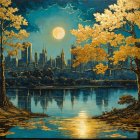 The image features three elegantly styled figures with dramatic makeup and ornate headpieces adorned with flowers and gold accents, set against a softly lit, muted green background.