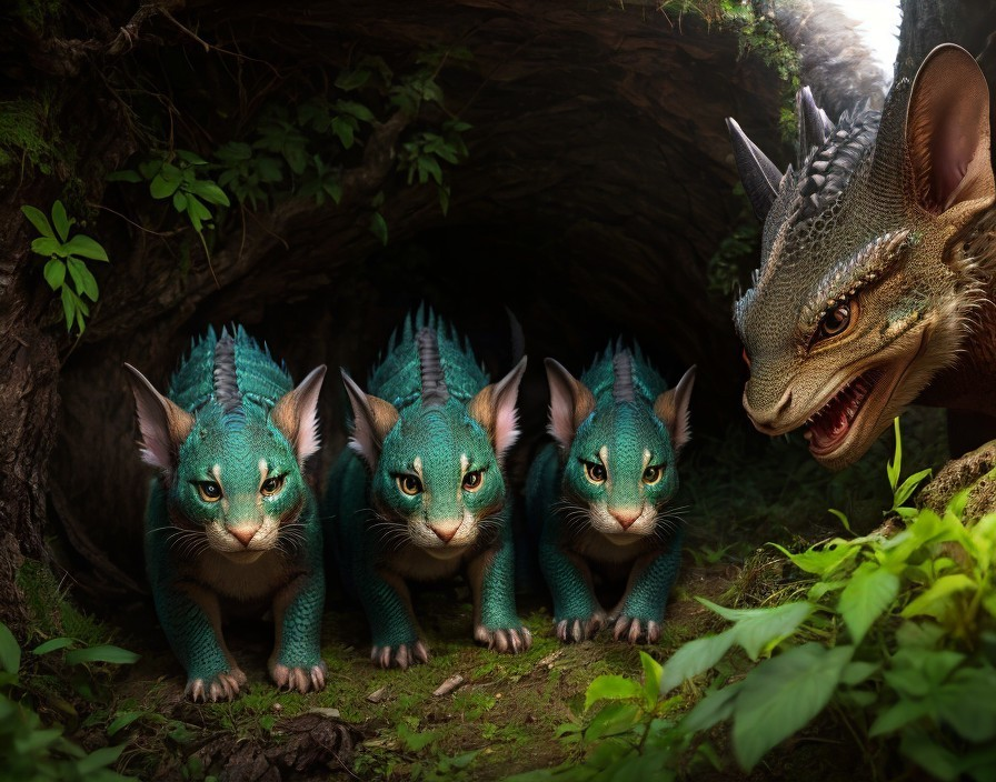 Cave Entrance with Small Dragon-like Creatures