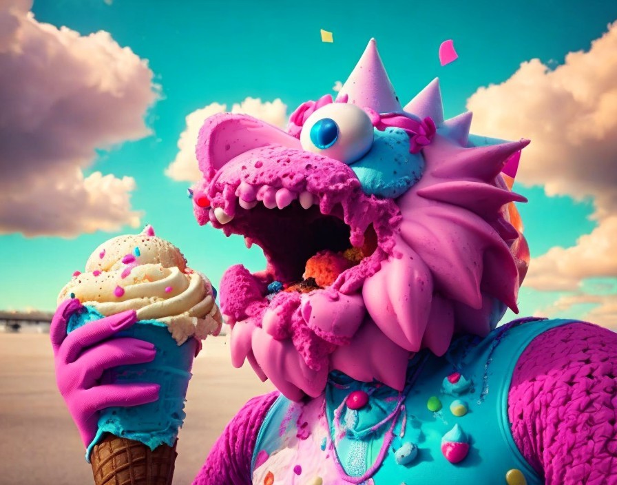 The sun is warm and the ice cream is melting, he better eat that ice cream quick smart to stay cool