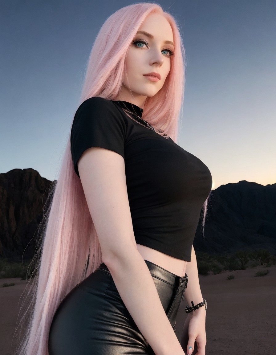 Prompt: "a beautiful woman, (30 years old), long pink hair, pale skin, blue eyes,