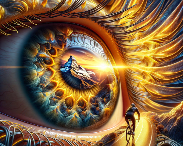 A mysterious figure embodies time itself, with glowing red eyes reflecting ancient hourglasses. His layered outfit merges ancient robes and futuristic armor, adorned with hidden engravings and a subtle logo. Crystals flicker from his nostrils, blending past and future.