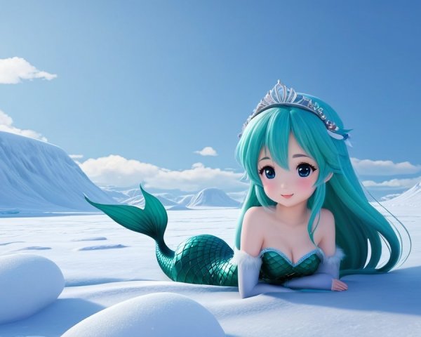 A charming anime character showcases a playful Siberian-inspired strapless swimsuit, featuring vibrant colors and intricate patterns. Her joyful expression and lively pose capture a sense of summer fun.