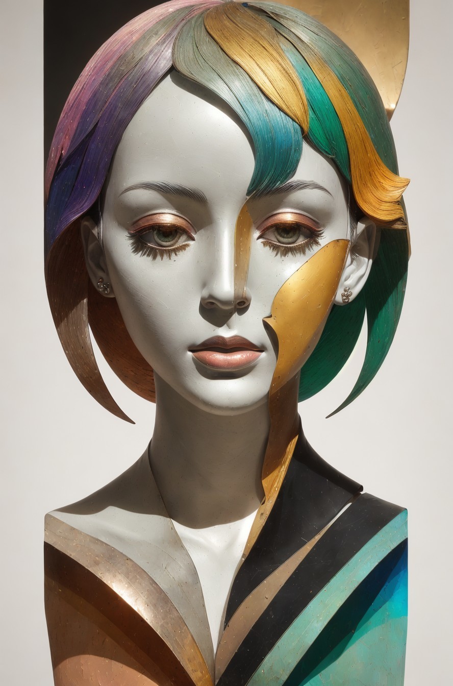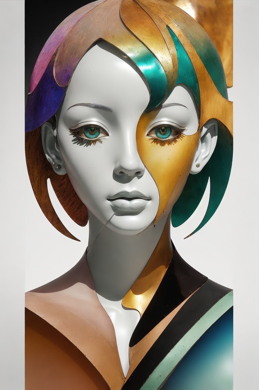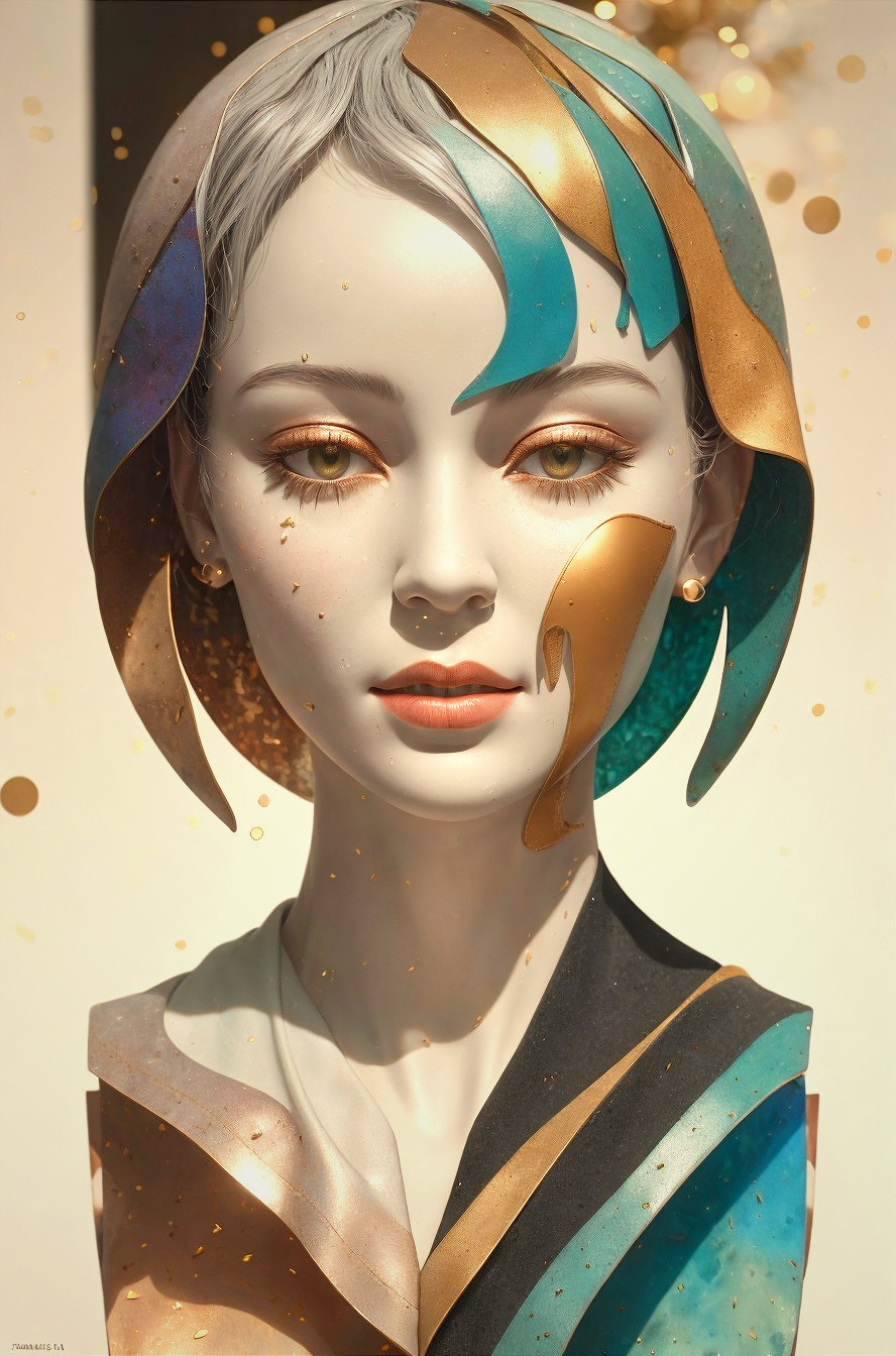Prompt: Upper body portrait by Freda People, joyful, porcelain textures, texture mapping 1.3, mercury glass patina, kinetic linework, muted ray-traced shadows, heavy impasto textures, layered complexity, surreal motifs, fragmented shapes, 3d effects, dynamic lighting, reflective mapping. dyed, dof, debeh, bokeh, unique, serene, colorful irregular colors, Catenaries, bold black ink linework, bidirectional reflectance distribution, phong shading, handsome sketch art approach by Susanne Mason, hues by Ho Baron, impossible light transtions, LiDAR point cloud, negative lucas numbers, radiance, contingous folk-art linework incorporating elements of American Gothic and a merged style inspired by Freda People and John Buscema, impossible light transitions, handsome pop art by Susanne Mason and Ho Baron, stylized silhouette in zentangle-style curves, plasticity 1.3 by Ho Baron, gradients, subsurface scattering 1.3, warm tones, displacement mapping 1.3, back-lit, tetradic color scheme blue pink light-beige ochre, dyed, enlightened, brightness 1.3, opaque, translucent, stylized female, slightly angled side view, close up, transpositional invisible aperture, 1970s comic art heroine, 3d effects, casted shadows, collage art akin to Intricate etching, fusion of foampunk and fantasy elements, inspired by Tara Donovan and William Bradley's styles, soft watercolor washes, collagraphy merged with giclée print, enchanted female, style of 1970s Retro Psychedelic and dystopian line-art, pop- art, double exposure portrait with emulsion lifts, whimsical linework elements, elongated shadows, simplistic linocut at bottom, radial gradient colors of blue and cyan intertwined, balanced coloring, stylized details of American Gothic merged with comic book art, dynamic lighting and ambient occlusion for depth, parallax occlusion 1.8, enhanced 3d effects, fusion of styles with elements of foampunk & collagraphy, high plasticity. mip-mapping, dynamic lighting, estranged outlines.