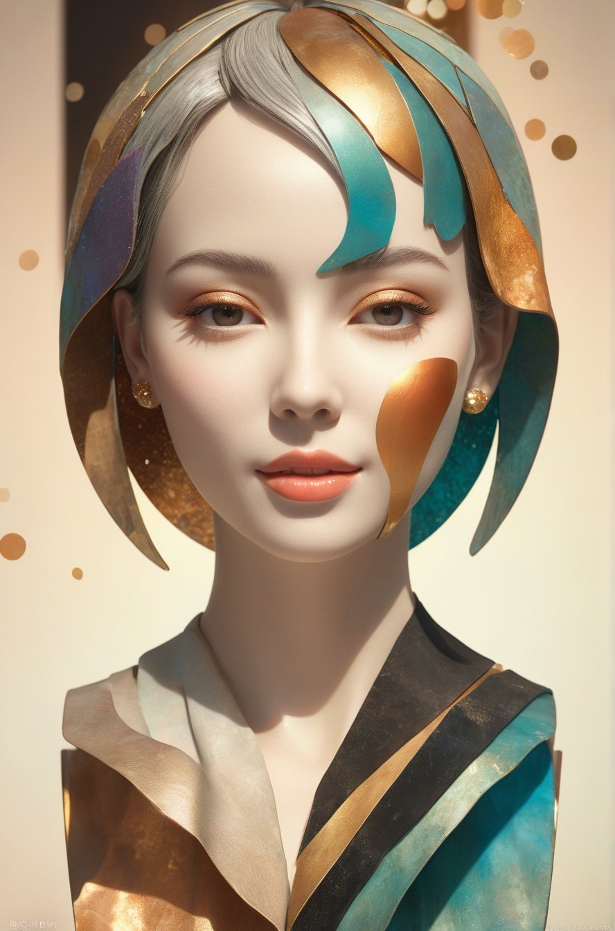 + Prompt:mercury glass patina, kinetic linework, muted ray-traced shadows, heavy impasto textures, layered complexity, surreal motifs, fragmented shapes, 3d effects, dynamic lighting, reflective mapping. dyed, dof, debeh, bokeh, unique, serene, colorful irregular colors, Catenaries, bold black ink linework, bidirectional reflectance distribution, phong shading, handsome sketch art approach by Susanne Mason, hues by Ho Baron, impossible light transtions, LiDAR point cloud, negative lucas numbers, radiance, contingous folk-art linework incorporating elements of American Gothic and a merged style inspired by Freda People and John Buscema, impossible light transitions,handsome pop art by Susanne Mason and Ho Baron, stylized silhouette in zentangle-style curves, plasticity 1.3 by Ho Baron, gradients, subsurface scattering 1.3, warm tones, brightness 1.3, back-lit, tetradic color scheme blue pink light-beige ochre, dyed, enlightened, brightness 1.3, opaque, translucent, stylized female, slightly angled side view, close up, transpositional invisible aperture, 1970s comic art heroine, 3d effects, casted shadows, collage art akin to Intricate etching, fusion of foampunk and fantasy elements, inspired by Tara Donovan and William Bradley's styles, soft watercolor washes, collagraphy merged with giclée print, enchanted female, style of 1970s Retro Psychedelic and dystopian line-art, pop- art, double exposure portrait emulsion lifts, whimsical linework elements,elongated shadows,simplistic linocut, radial gradient colors of blue and cyan intertwined, balanced coloring, stylized details of American Gothic merged with comic book art, dynamic lighting and ambient occlusion for depth, parallax occlusion enhances the three-dimensional effect, fusion of styles with elements of foampunkcollagraphy, high plasticity.mip-mapping, dynamic lighting, estranged outlines.