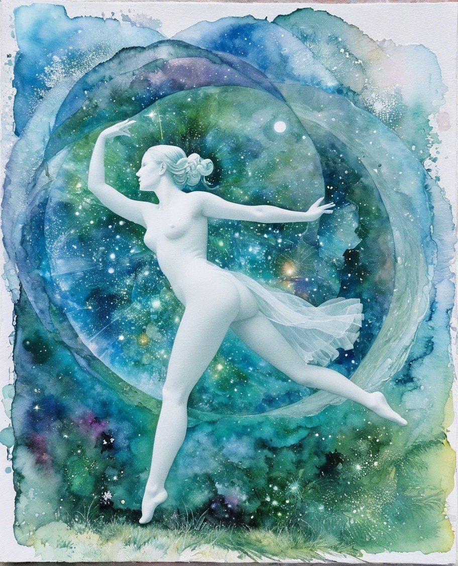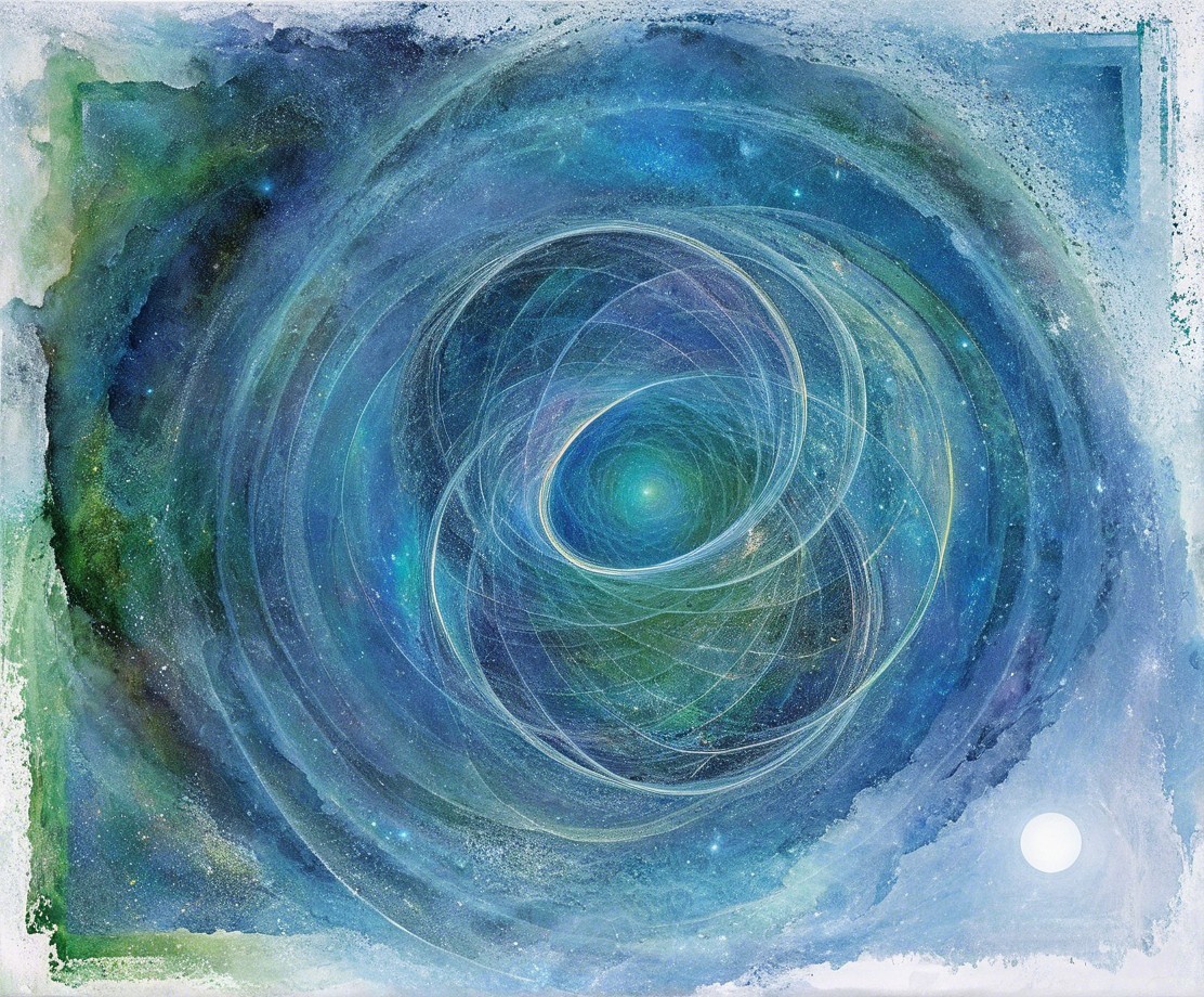 A large, colorful cube with polka dots hovers above a mountainous landscape, with a dramatic sky in the background, creating a surreal and striking visual contrast.