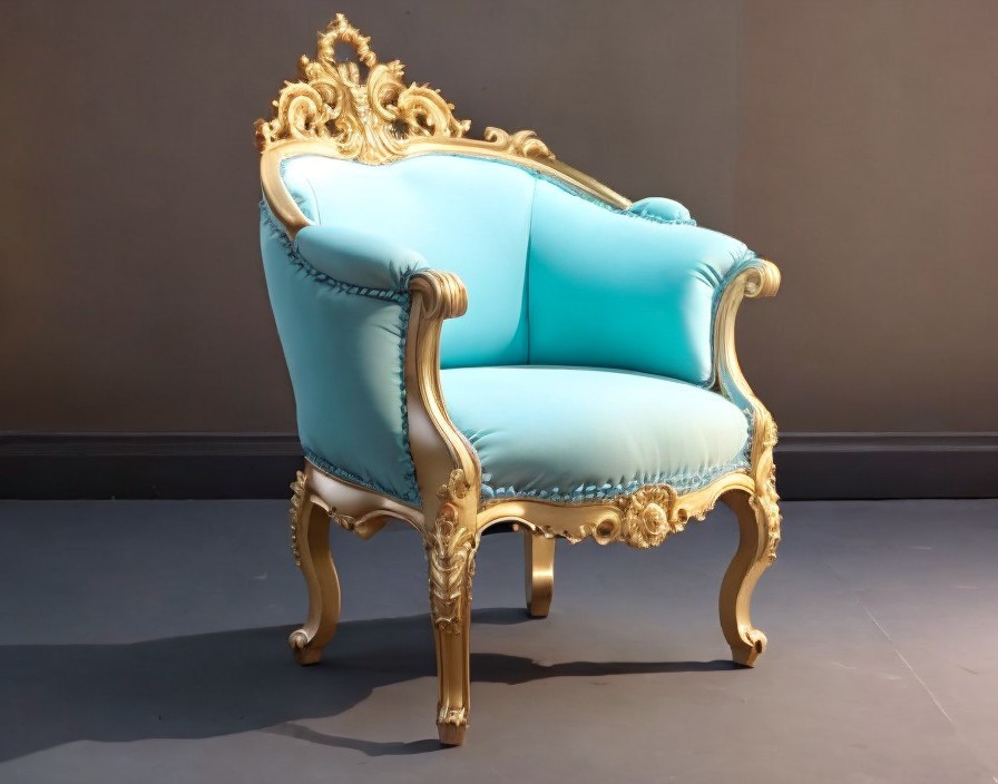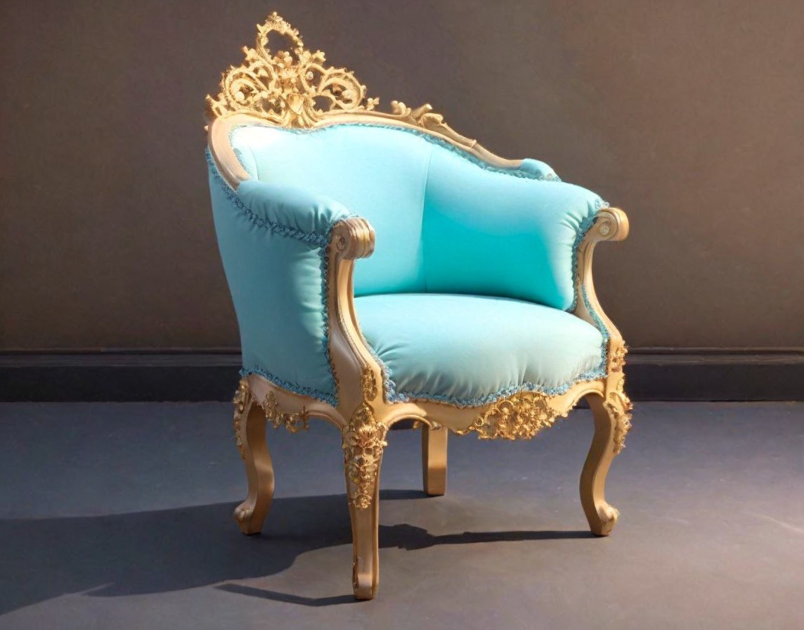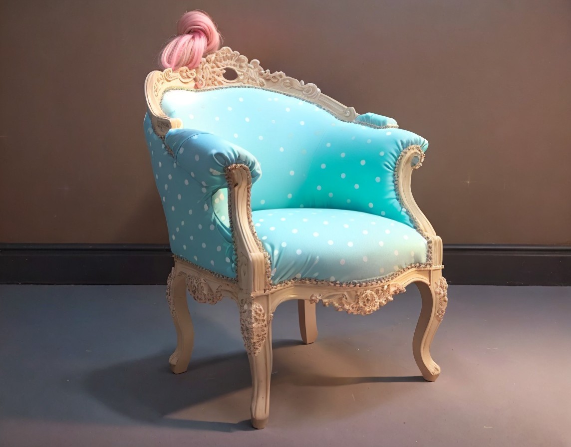 Pink Wooden Frame Armchair with Light Blue Polka Dot Upholstery
