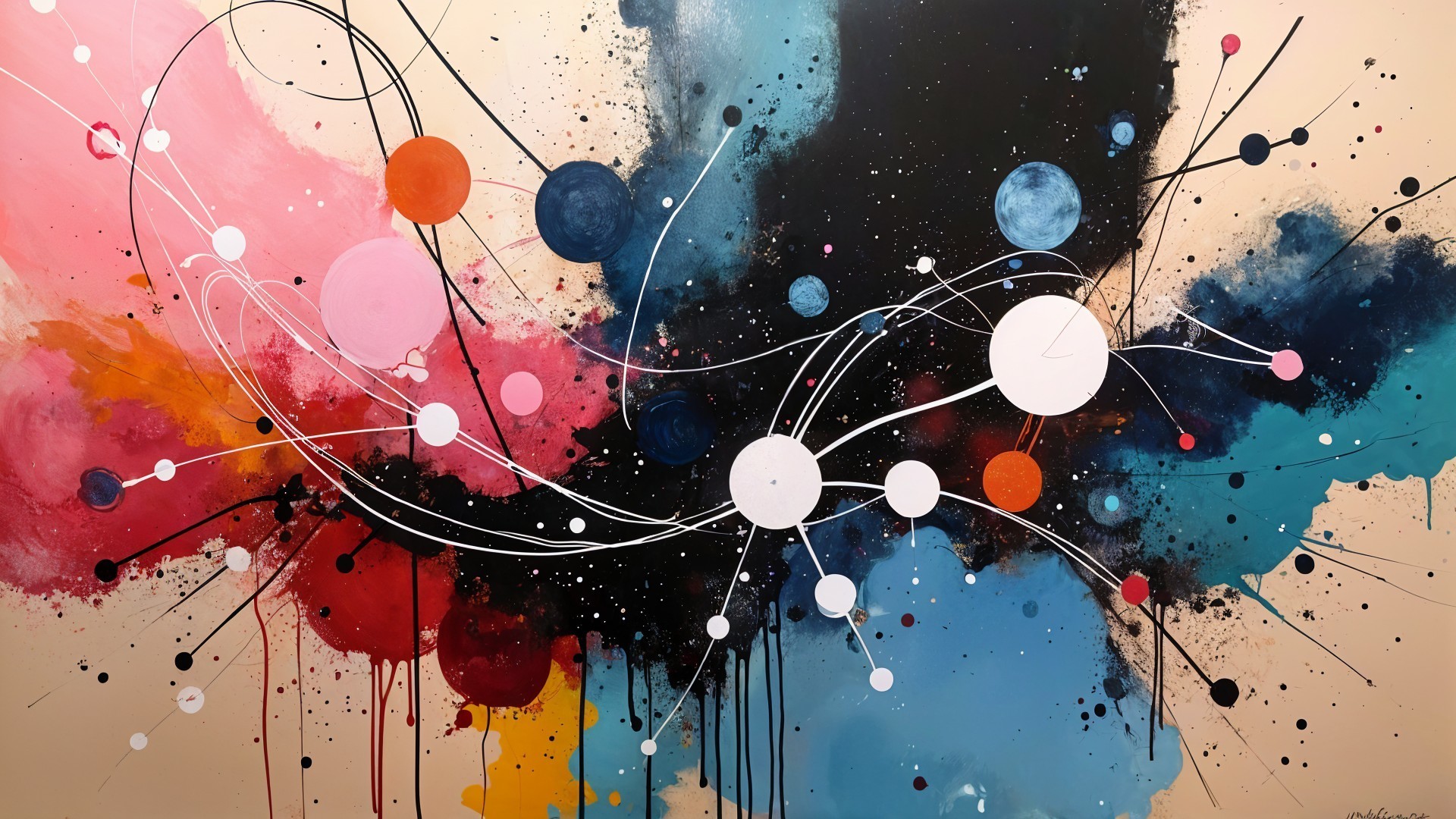 Prompt: Create a modern oil painting of a terrified young man, strawberry blonde haired, wearing a woolly jumper surrounded by cute cartoon cats. Funny and terrifying painting.