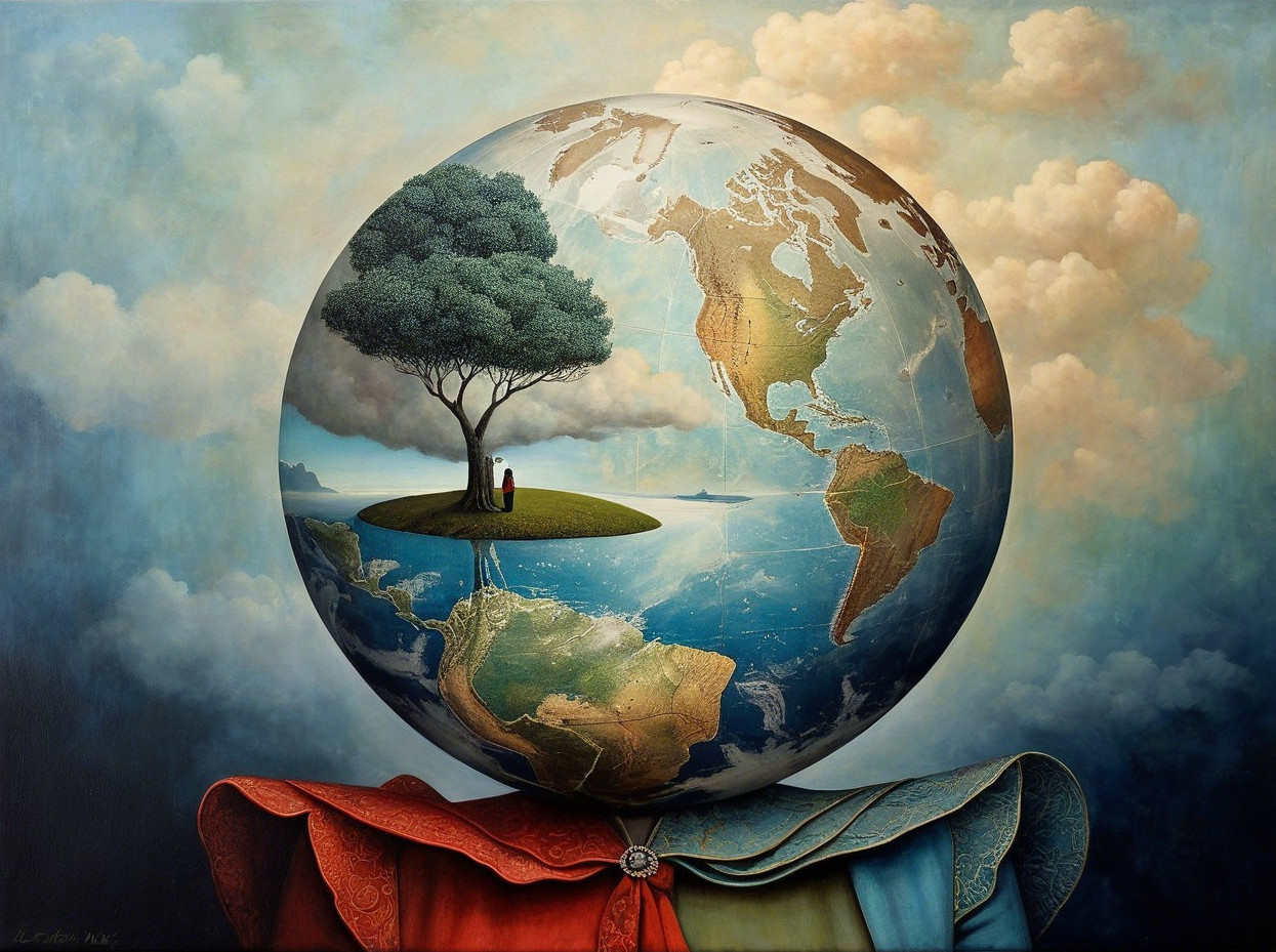 Prompt: a photorealistic Monet masterpiece of abstraction and surrealism, highland lake background, OLD MAN IN surreal boat, painted by Klimt and Dave McKean, With undertones of paint splatter. highly detailed, elegant bright, beautiful cinematic postprocessing, H.R. Giger, Impressionist, Amedeo Modigliani ,Jeremy Mann, Yossi Kotler, Josef kote. Psychedelic paint splatter and paint scratches