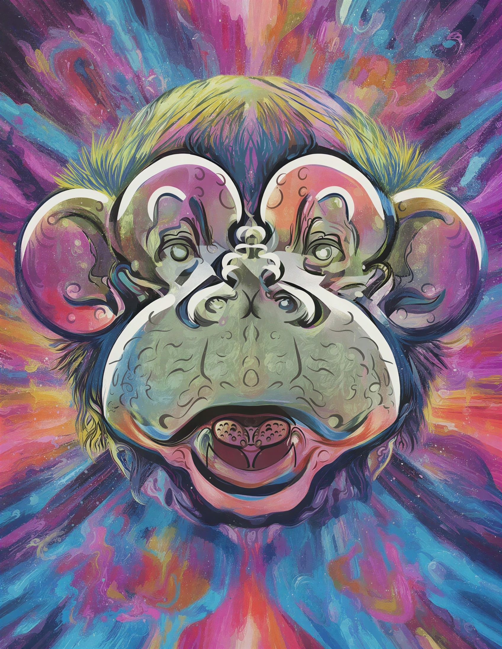The overall style blends elements reminiscent of medieval or renaissance portraiture with fantastical surrealism creating a dreamlike atmosphere.