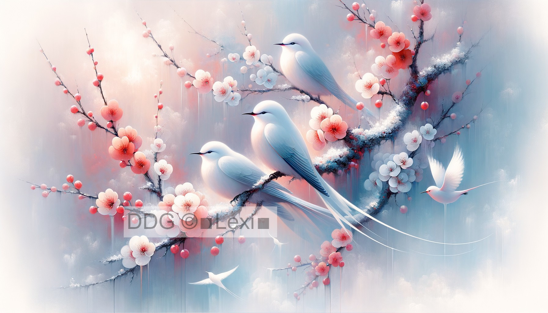 Snow Fairy Birds at Plum Tree