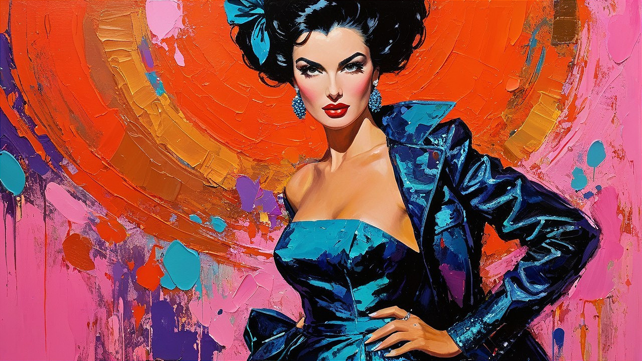 Chic Style Against Bold Abstract Backdrop