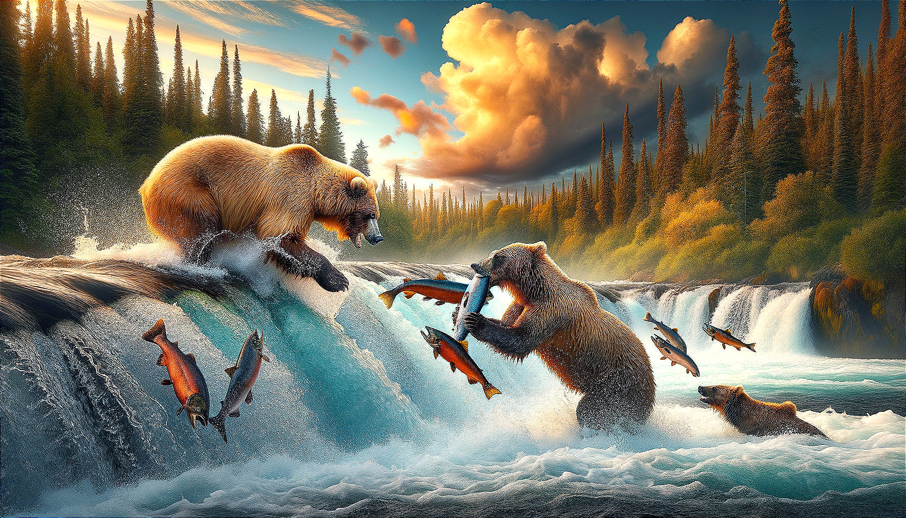 Bears Feeding: Brooks Falls Wildlife Scene