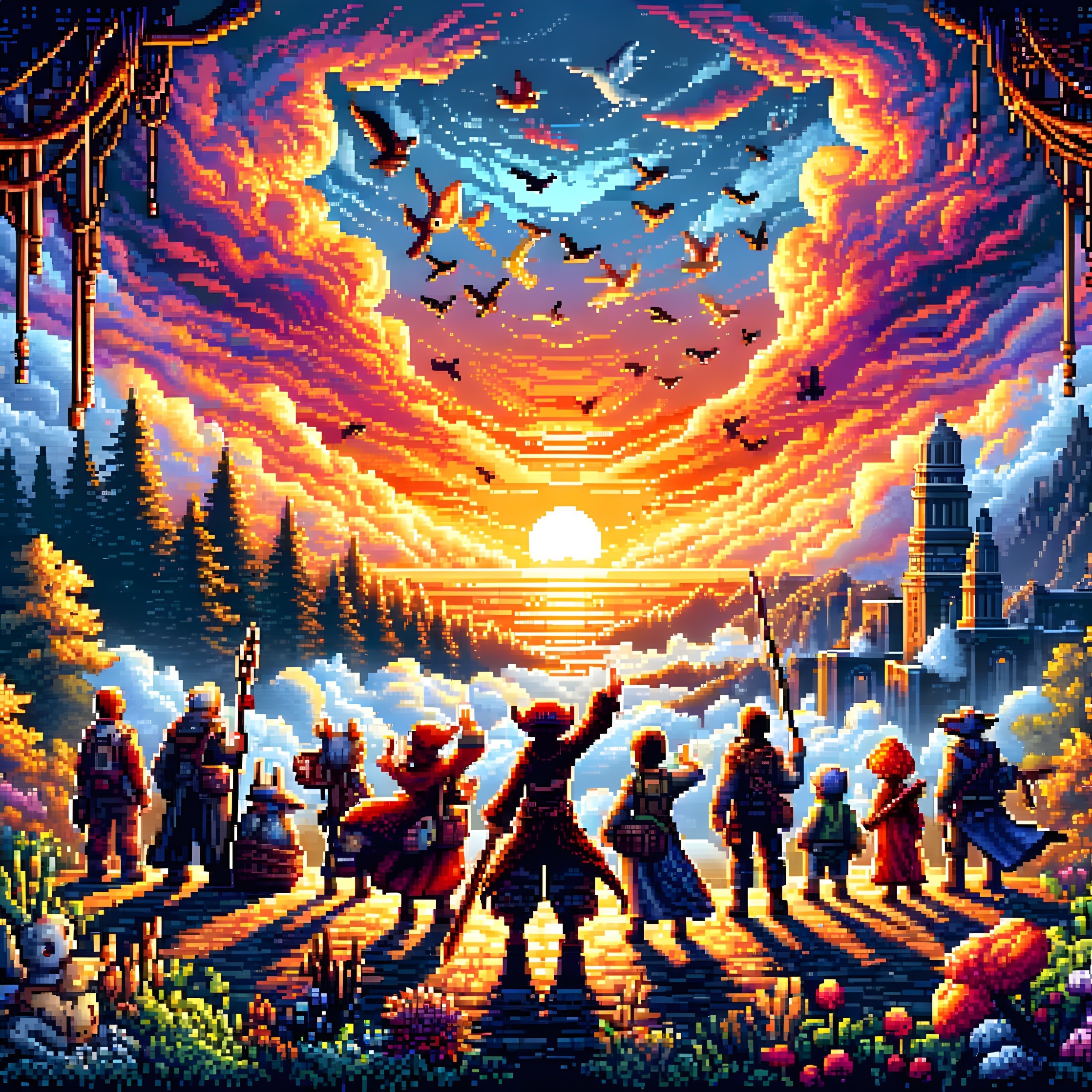 Adventure at Dawn: Pixel Art Landscape