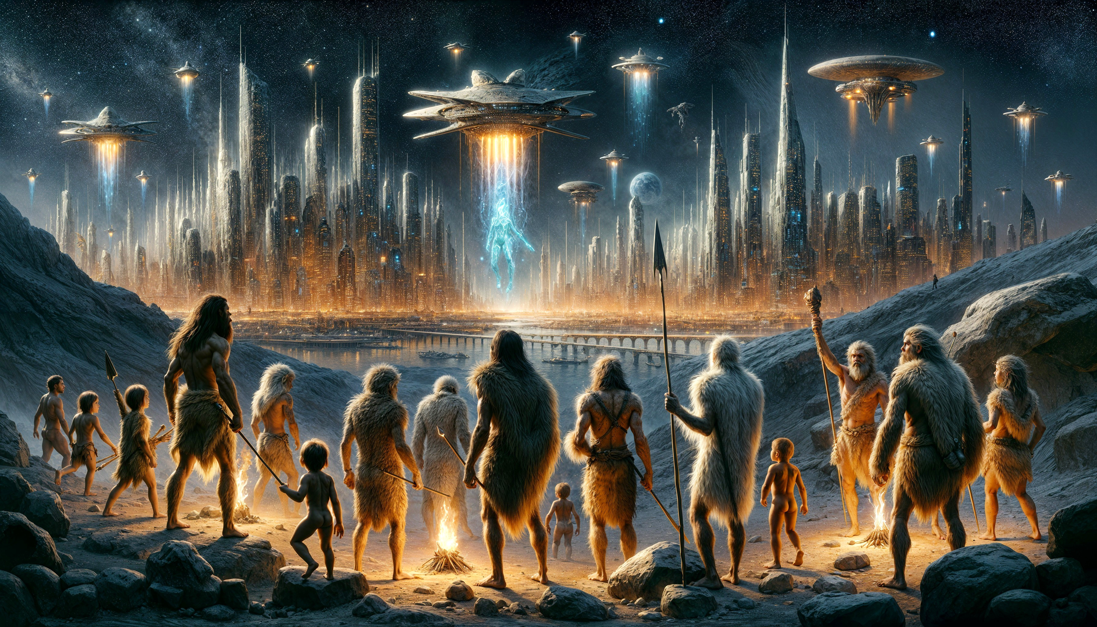 Ancient Humans Meet a Futuristic City