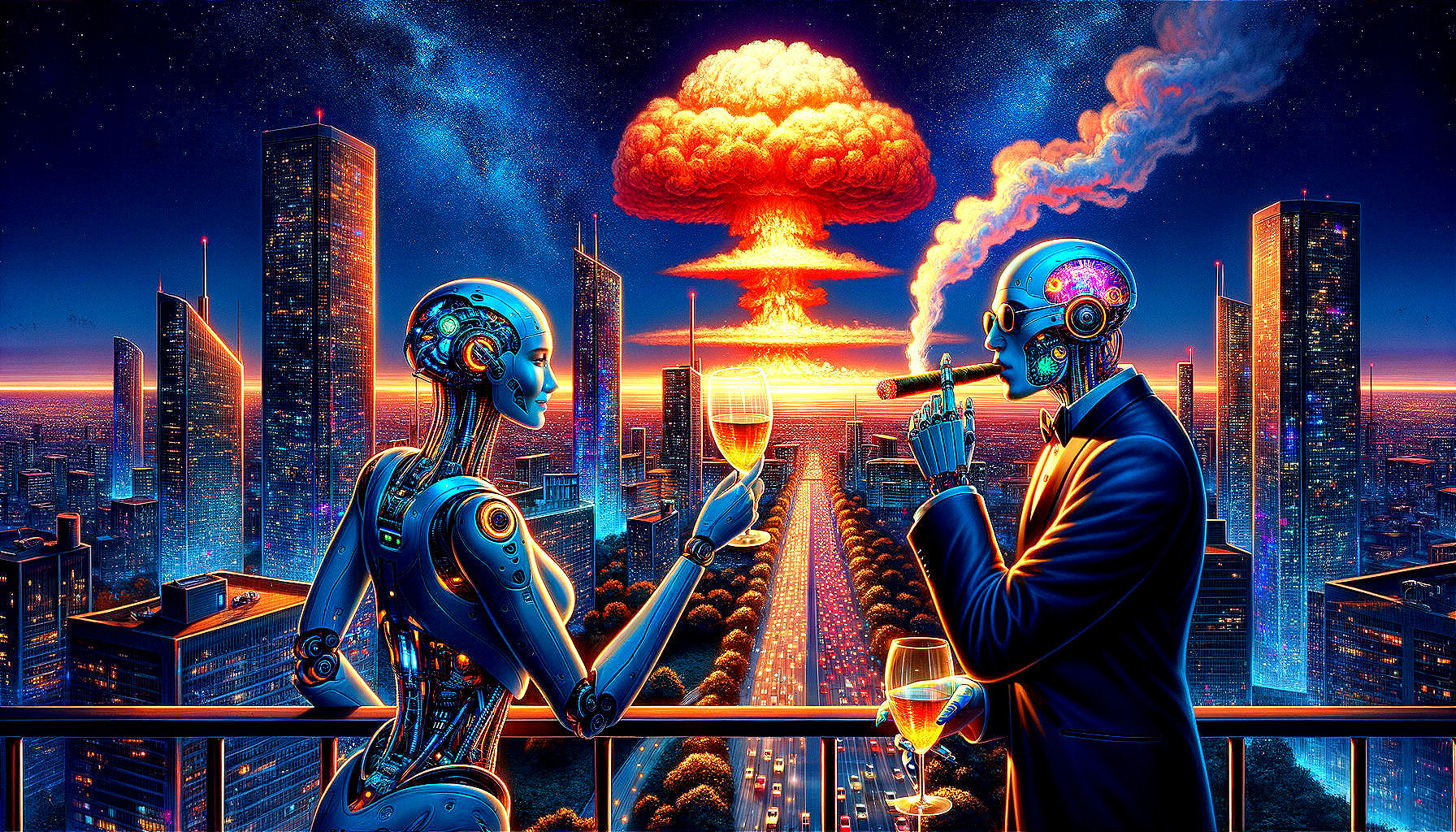 A pastiche of Bender, a Cyberman, Robocop, a Cylon, Kryten, and C3PO