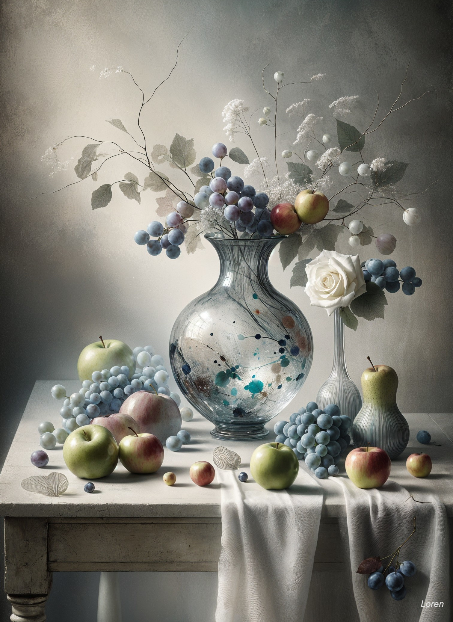 Elegant Still Life with Flowers and Fruit