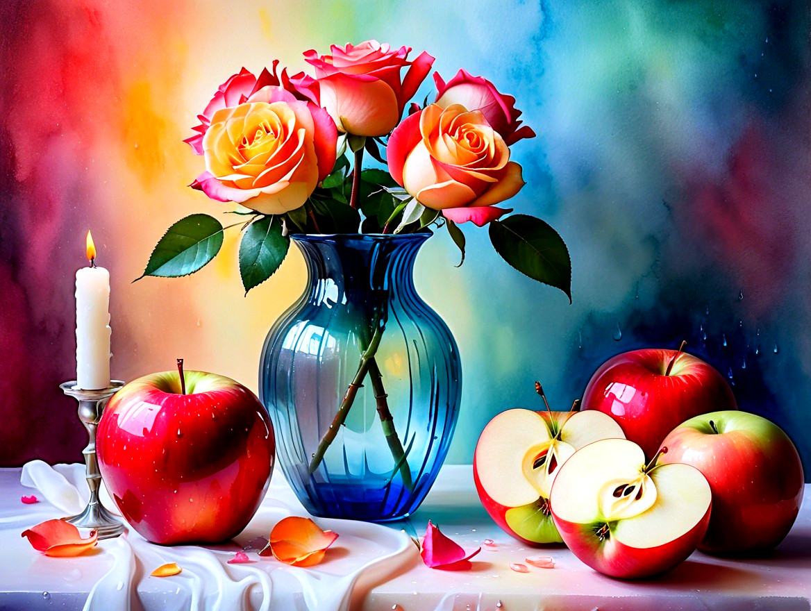 Vibrant Still Life with Roses and Apples