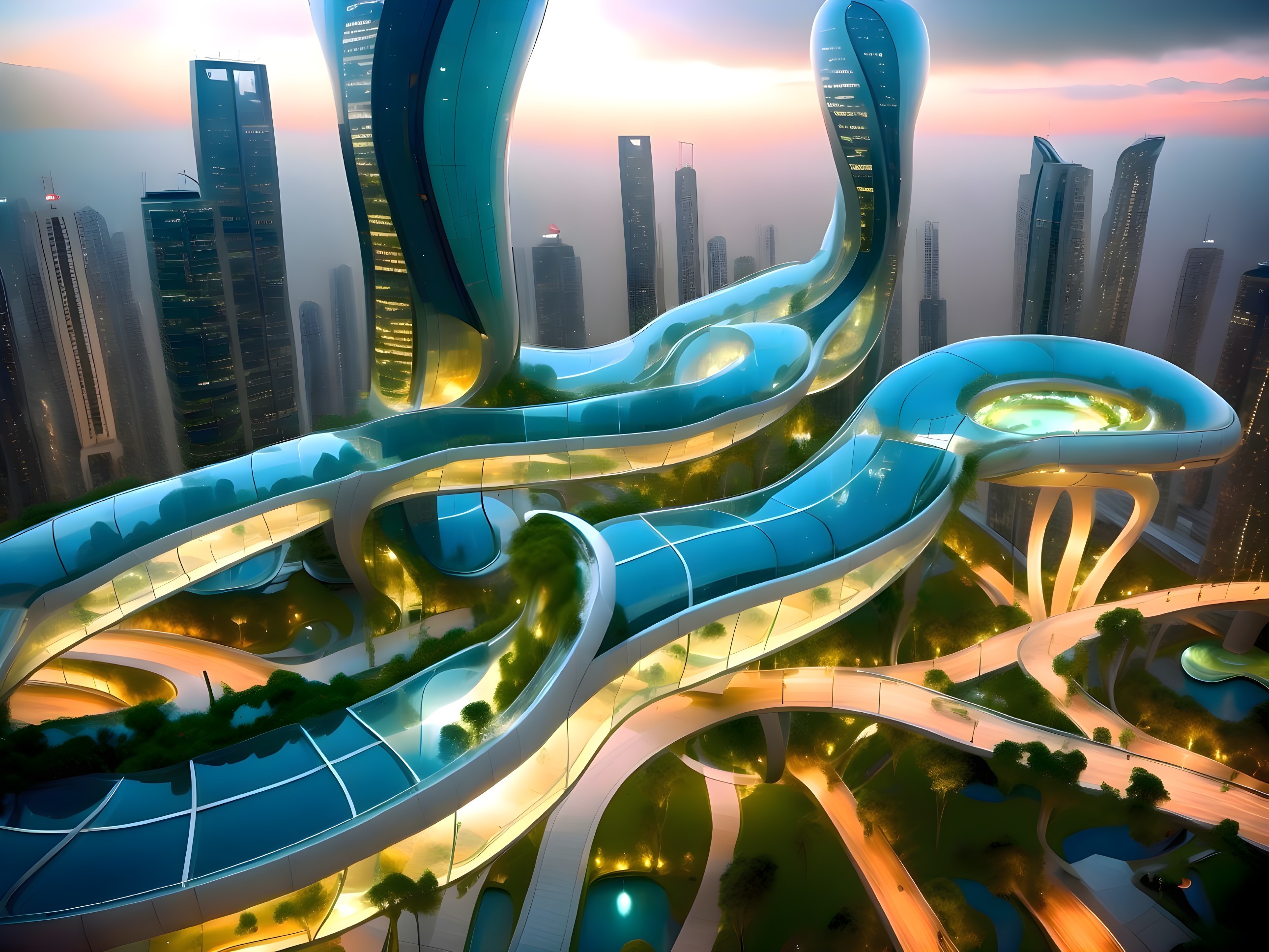 Sky High Gardens SK 206:1005. www.omarsolh.com Futuristic Cityscape at Sunset