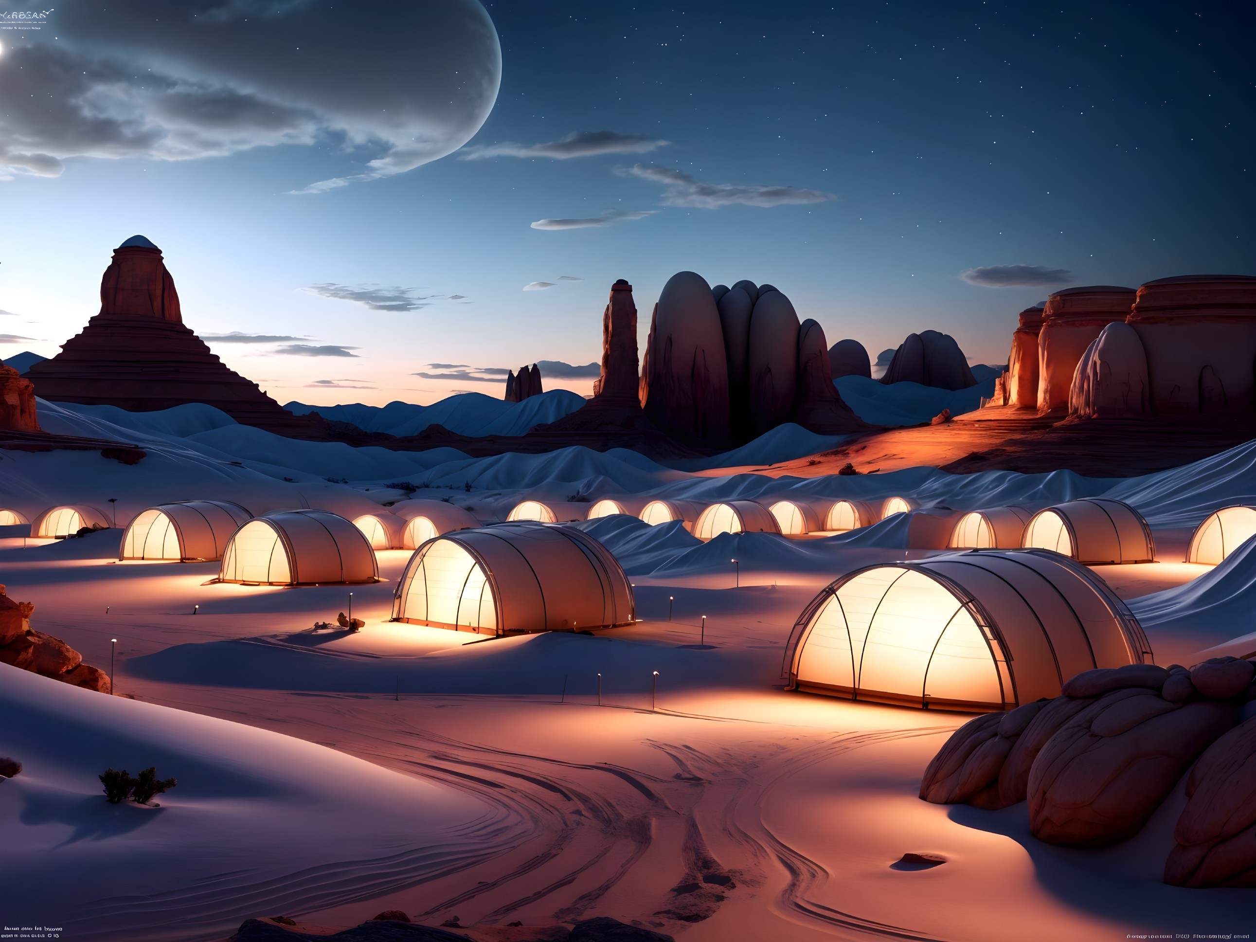 Desert Landscape SK 254:25 01 26. www.omarsolh.com Glowing Domes in a Moonlit Landscape