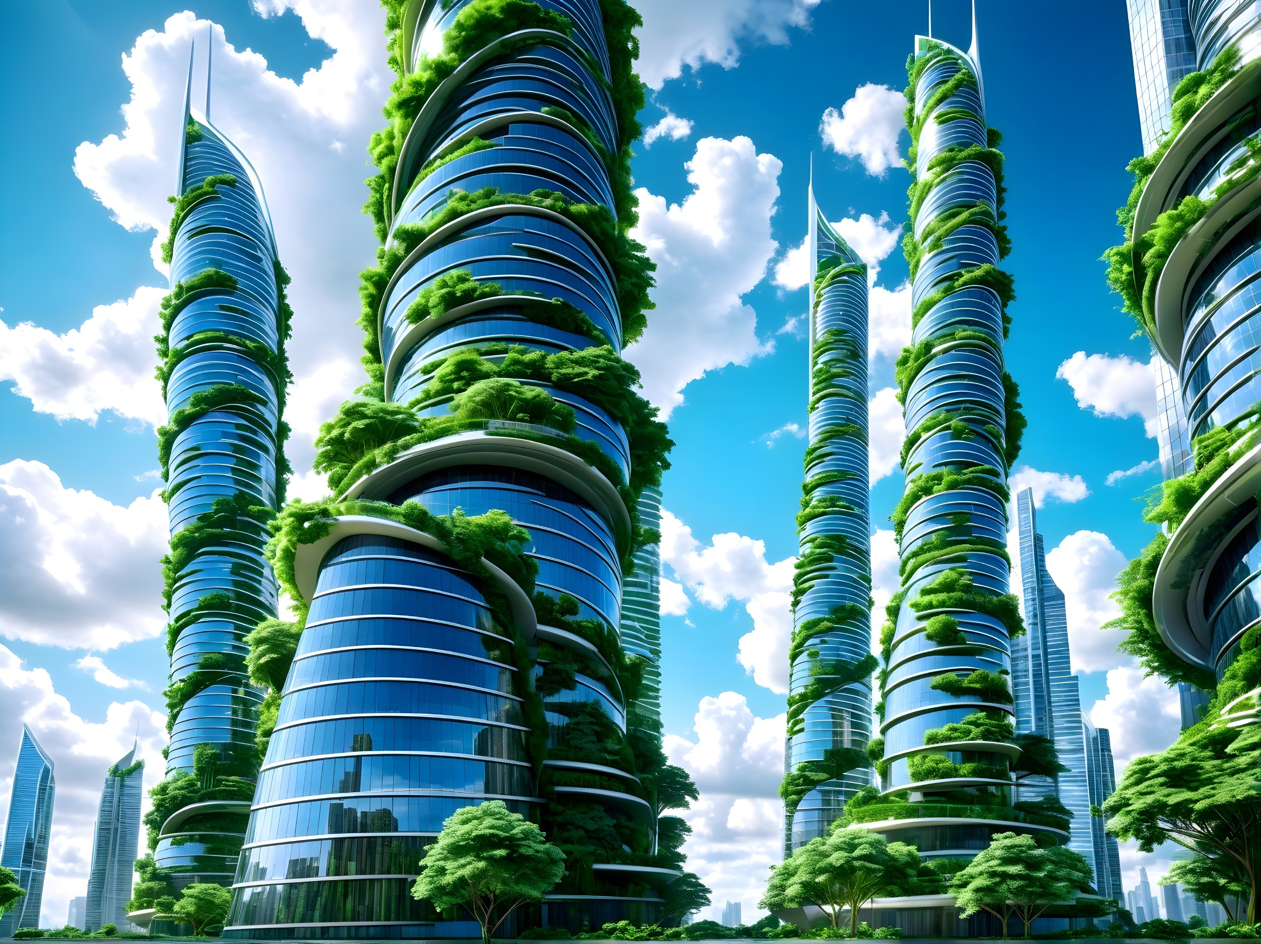 Sky High Gardens SK 213:25 01 24. www.omarsolh.com Green Skyscrapers in a Futuristic Cityscape