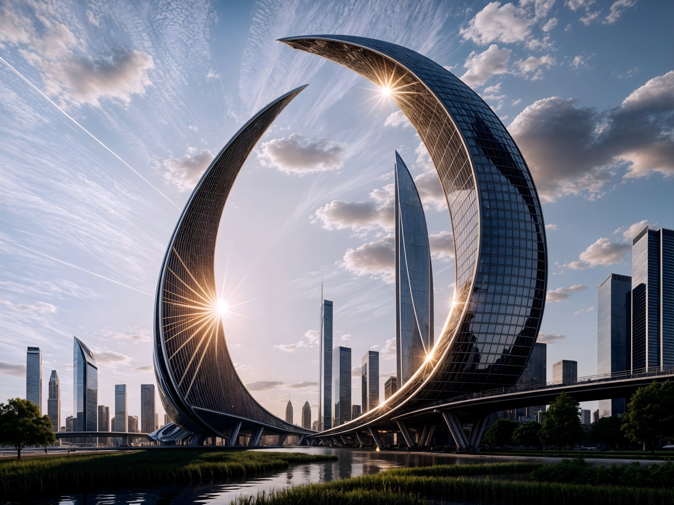 Sky High SK 295:1017. www.omarsolh.com Futuristic Cityscape with Curved Skyscrapers