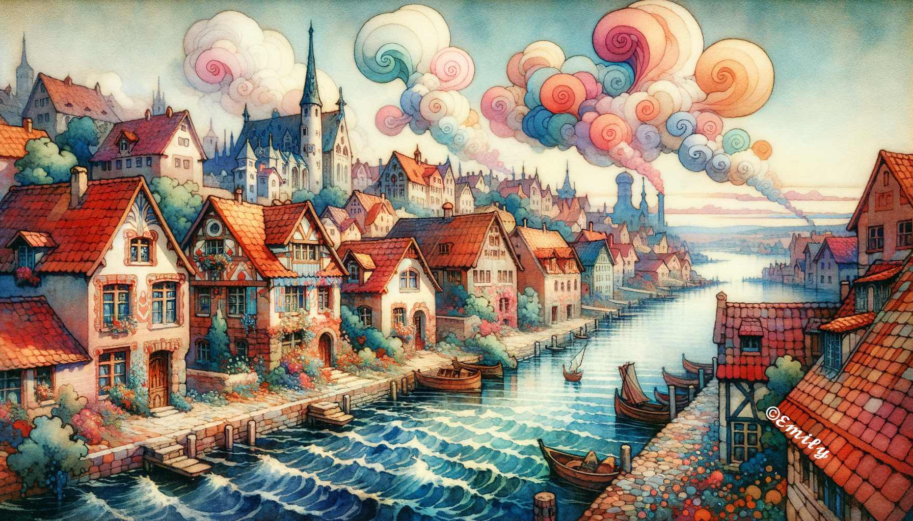 Spiral Clouds Over Riverside Village